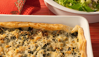 Naczynie do pieczenia posmarowałam oliwą i wyłożyłam spód i boki ciastem francuskim. Można zamiast smarowania oliwą położyć papier do pieczenia ( ja nie chciałam mieć tego na zdjęciuJ).